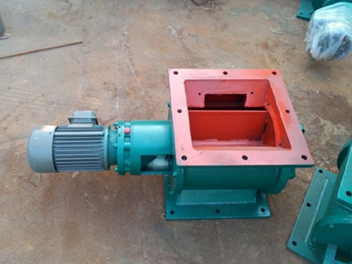 卸料器的結(jié)構(gòu)是由帶有數(shù)片葉片的轉(zhuǎn)子葉輪、殼體、密封件及減速器、電動(dòng)機(jī)等組成。當(dāng)上部料倉的物料靠自重落下充填在葉片之間的空隙中,隨葉片的旋轉(zhuǎn)而在下部卸出, 因此, 星型卸料器可以定量而連續(xù)地卸料。